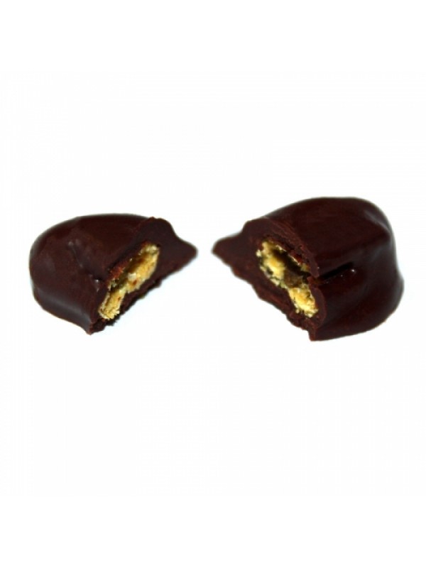 Oven roasted silkworm pupae covered in a delicious dark chocolate coating.